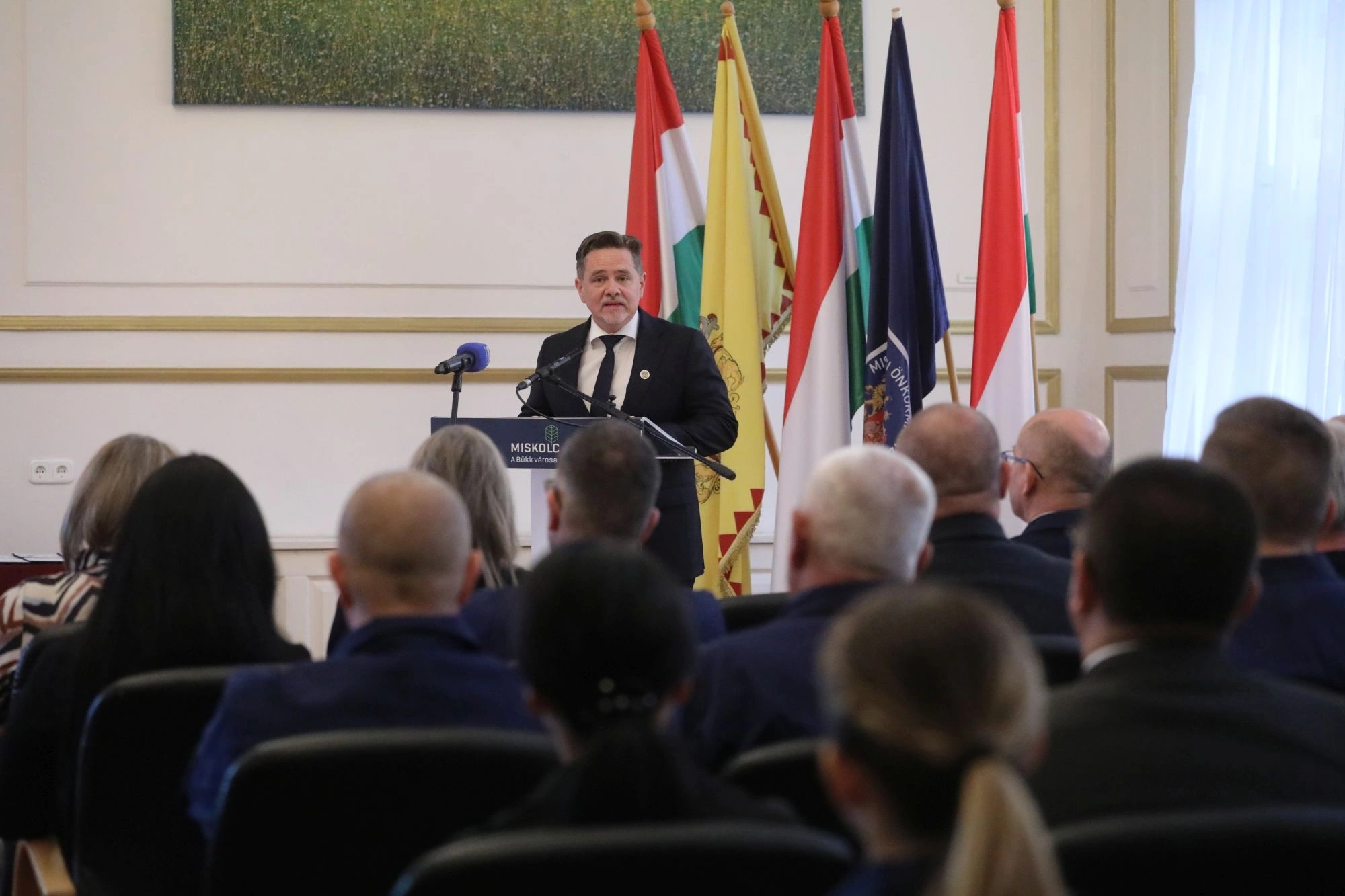 Tóth-Szántai József polgármester arról beszélt, hogy a közterület-felügyelet és a rendészet nem pusztán egy intézmény, hanem egy hivatás iránt elkötelezett közösség, amelynek munkája alapvető feltétele Miskolc élhetőségének.