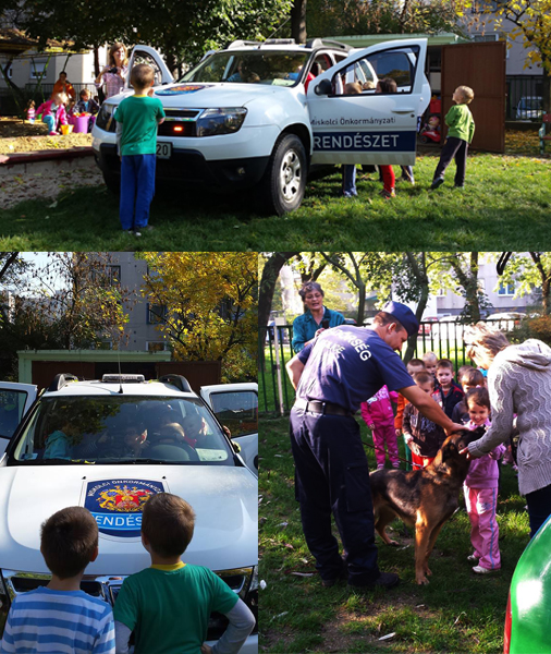 A bemutatónak otthont adó Miskolci Belvárosi Óvoda "lakói" egy robbanóanyag keresésére speciálisan kiképzett rendőrkutyával barátkozhattak, majd ezt követően lehetőségük nyílt a járőr gépkocsik és azok technikai eszközeinek testközelből történő megismerésére, kipróbálása.A közösen eltöltött délelőtt mind a gyermekek, mind pedig a járőrök számára nagy örömet jelentett.