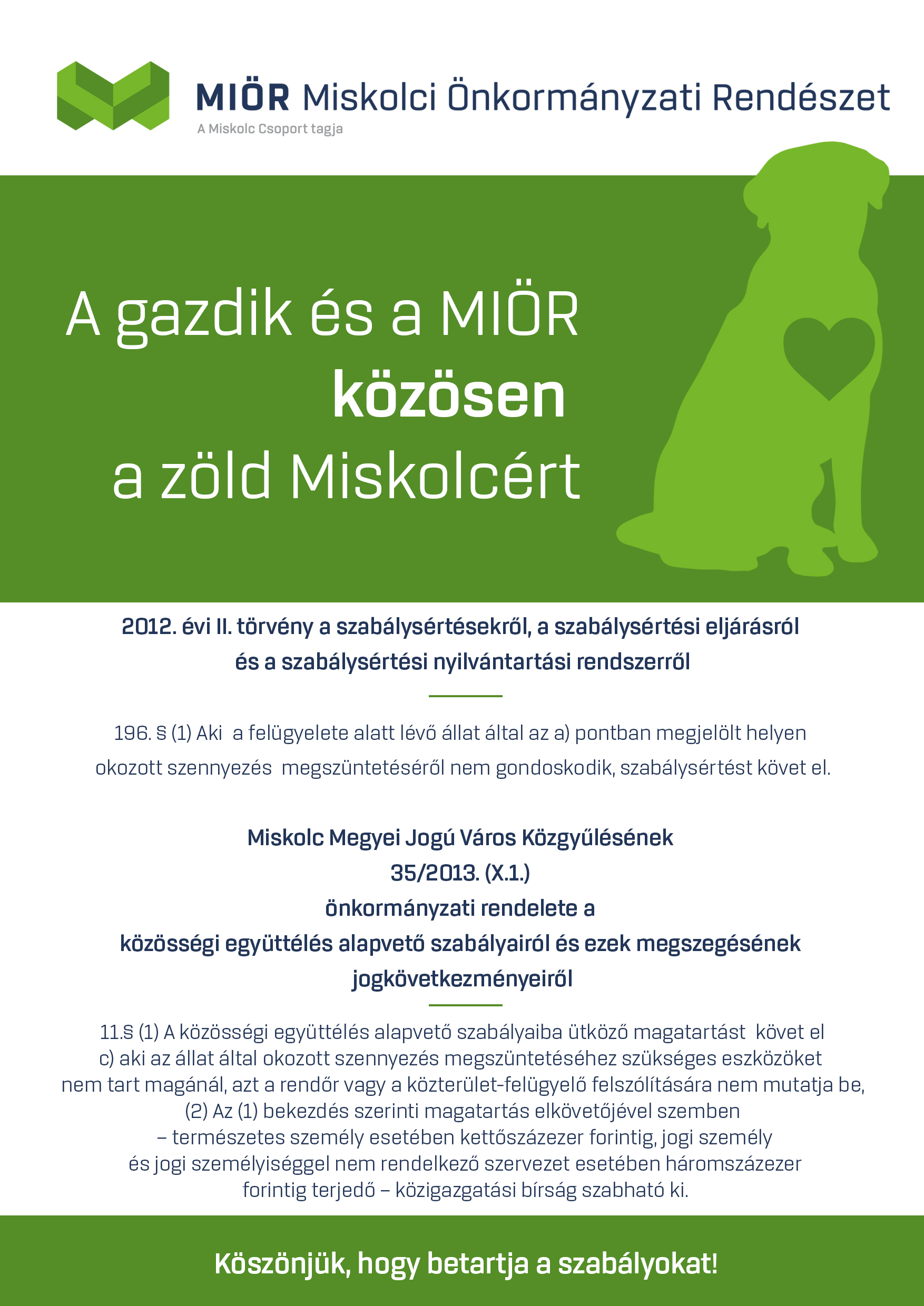 A megújult külsejű csomag átadásakor a szankció alkalmazása helyett lehetőség nyílik egy olyan preventív jellegű beszélgetésre is, melynek eredményeként közösen tudunk lépéseket tenni a zöld és tiszta Miskolcért
