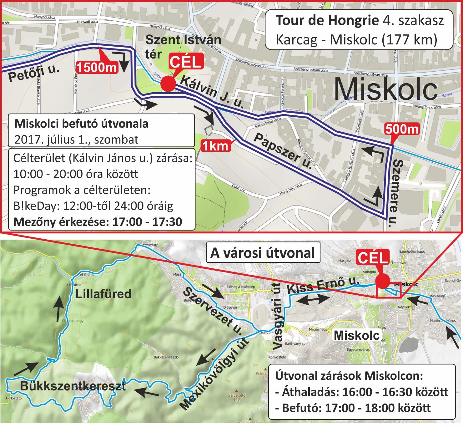 2017. július 1-jén, szombaton Miskolcra érkezik a Tour de Hongrie nemzetközi kerékpárverseny. A látványos és rangos eseményen több mint 30 ország profi kerékpárosait lehet testközelből megtekinteni, és szurkolni a magyar versenyzőknek. A verseny átmeneti lezárásokkal és forgalomkorlátozásokkal is jár majd.